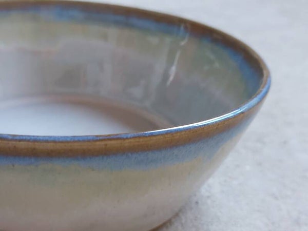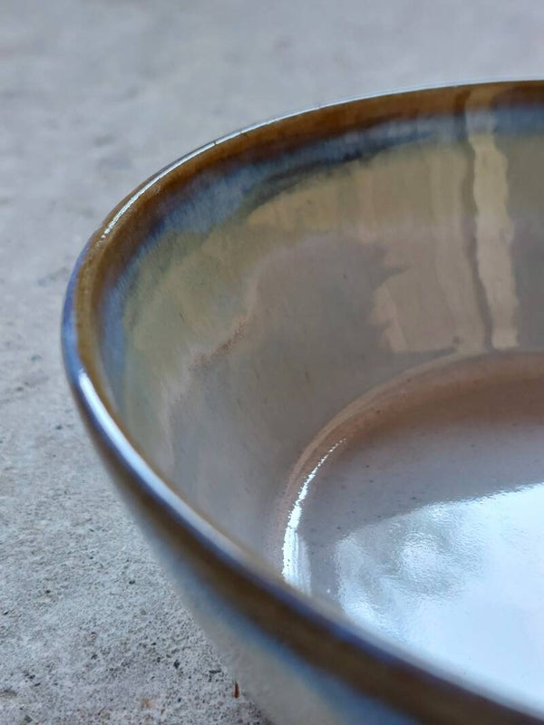 Na de biscuitbak worden drie soorten zelfgemaakte glazuur aangebracht. Daardoor krijg je een speling van wit, blauw en bruine tinten.
