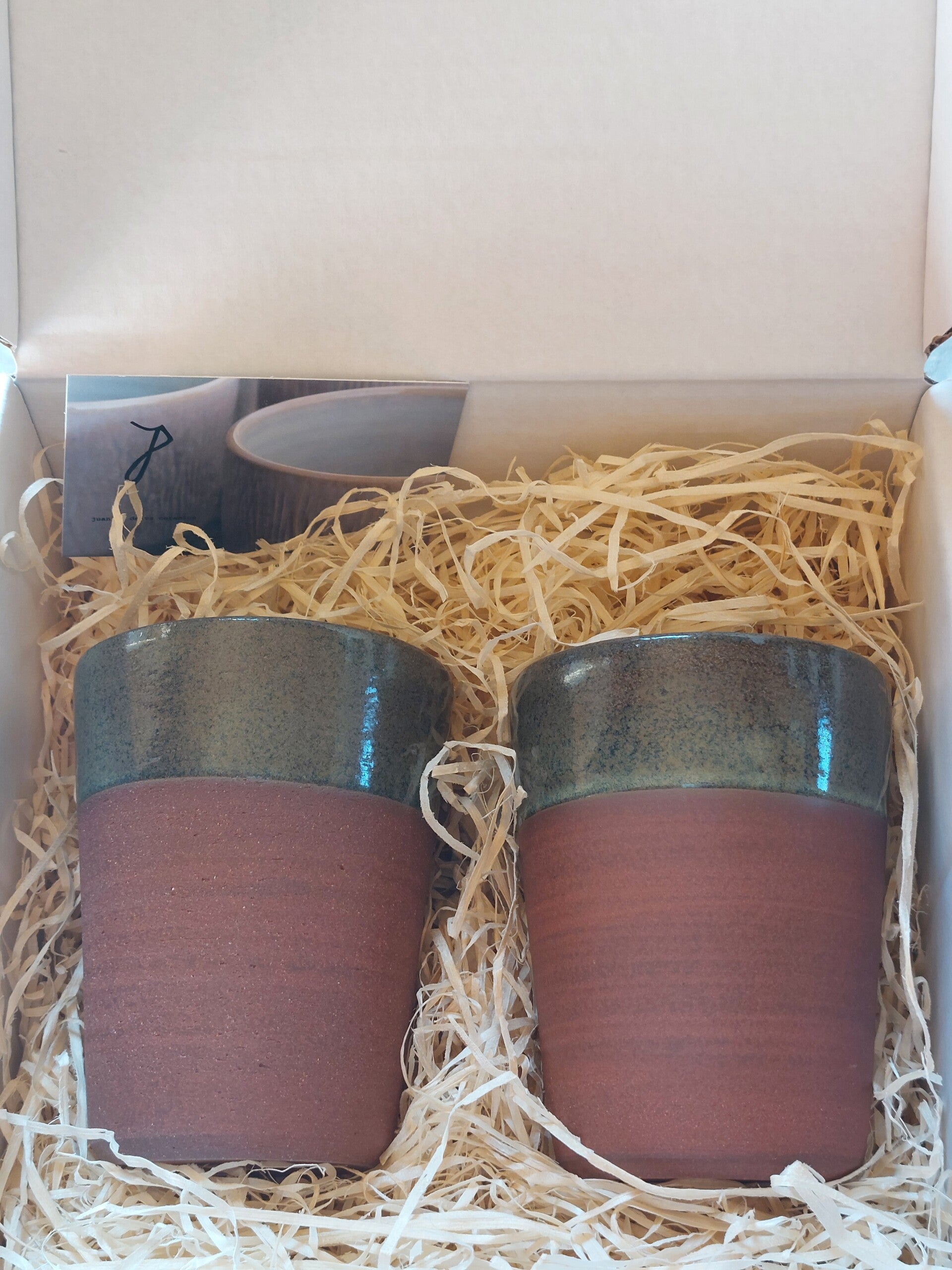 Tas in rode klei met bruin groen gele glazuur