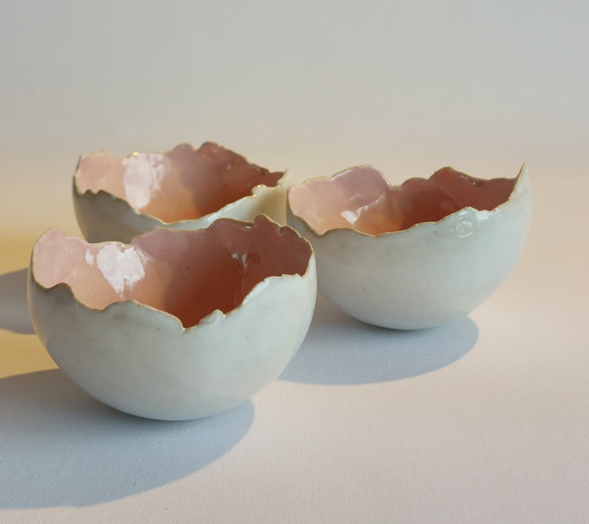 Ze worden afgewerkt met een roze glazuur aan de binnenkant en een witte glazuur aan de bovenkant.