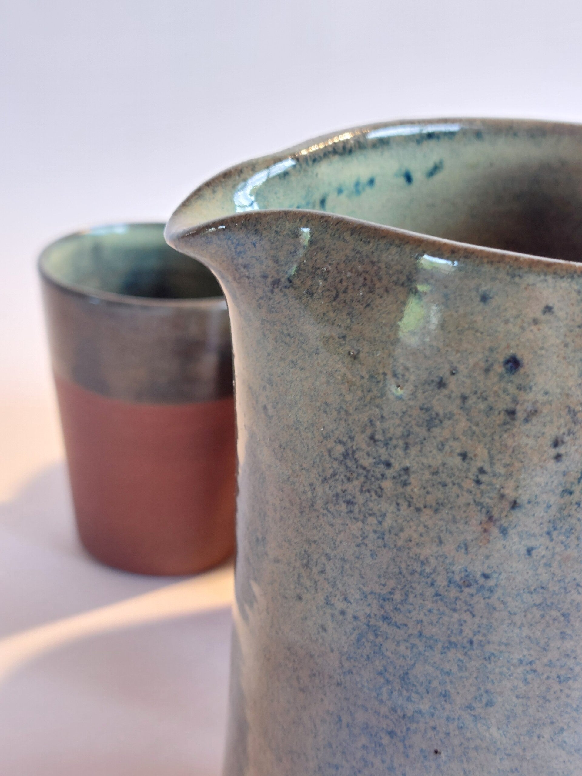 Kan in roodbakkende klei met bruin, groen en gele tinten